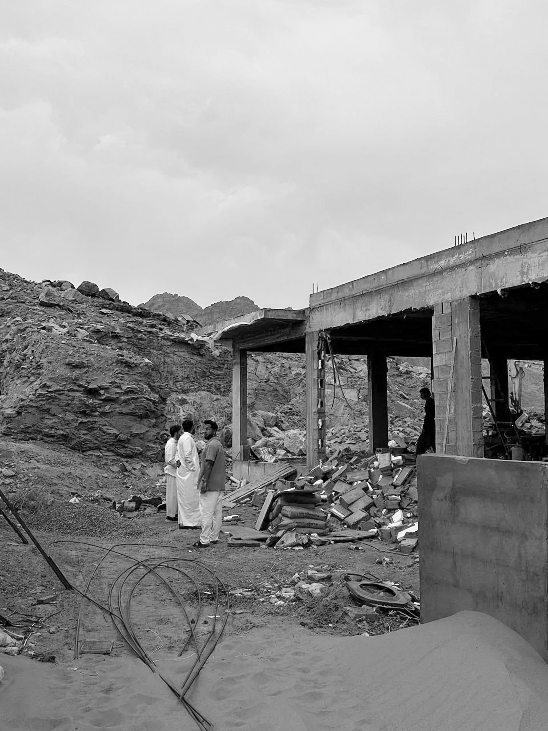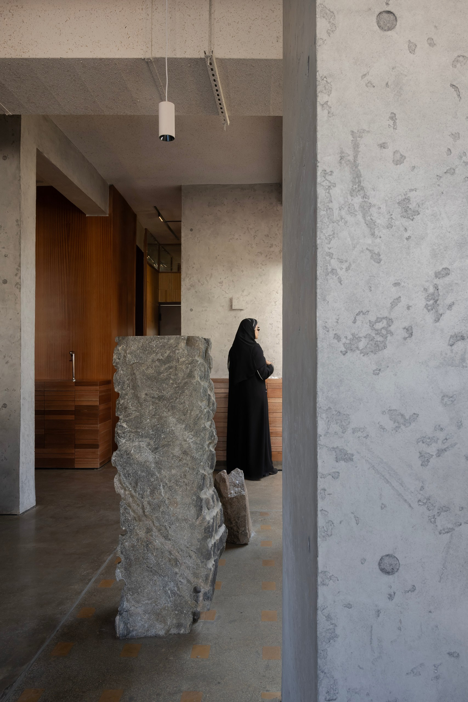 The project is located in Hail, Saudi Arabia, within a rapidly developing urban fabric shaped by both modern construction and striking natural landscapes. The site initially consisted of an unfinished concrete frame adjacent to a tall rock formation, which immediately became the project’s defining feature and primary architectural challenge.